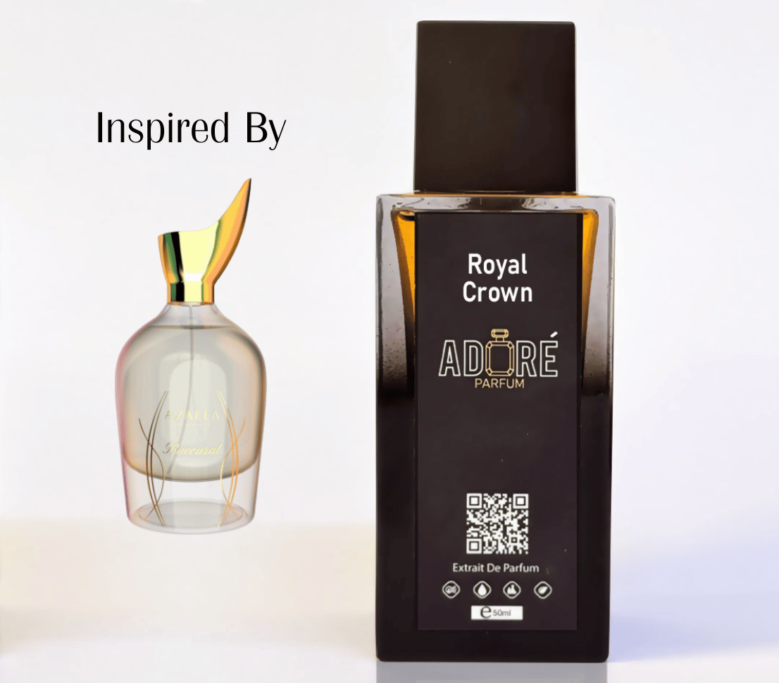 Royal Crown by Adore Parfum blends saffron, Egyptian jasmine, and bitter almond with warm ambergris, musk, and woody notes. This handcrafted fragrance exudes luxury and elegance, capturing timeless beauty and leaving a lasting impression.